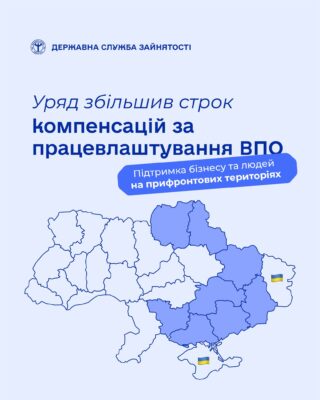 Тепер роботодавці з прифронтових та найбільш постраждалих від повномасштабної війни регіонів можуть отримувати компенсацію за працевлаштування внутрішньо переміщених осіб не 3, а 6 місяців!