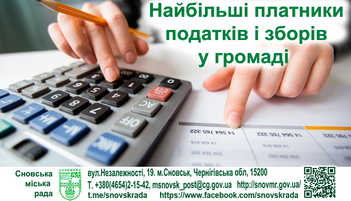 За підсумками 2025 року найбільшими платниками податків і зборів до бюджету Сновської громади стали: