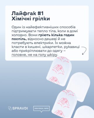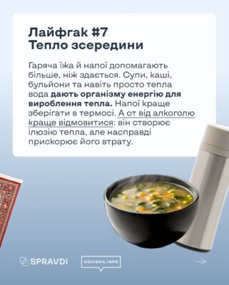 Ви можете ознайомитися з корисними лайфгаками, як зігрітися у разі відсутності опалення — усі поради зібрані на картках.