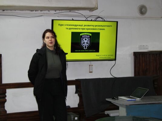Протягом кількох днів тренери ділилися своїм досвідом і вчили основам тактичної медицини, правил поведінки у випадках мінної загрози та методам психологічної допомоги в стресових ситуаціях. Атмосфера була водночас робочою і живою: учасники активно ставили запитання, відпрацьовували практичні навички та отримували поради, народжені у бойових умовах.