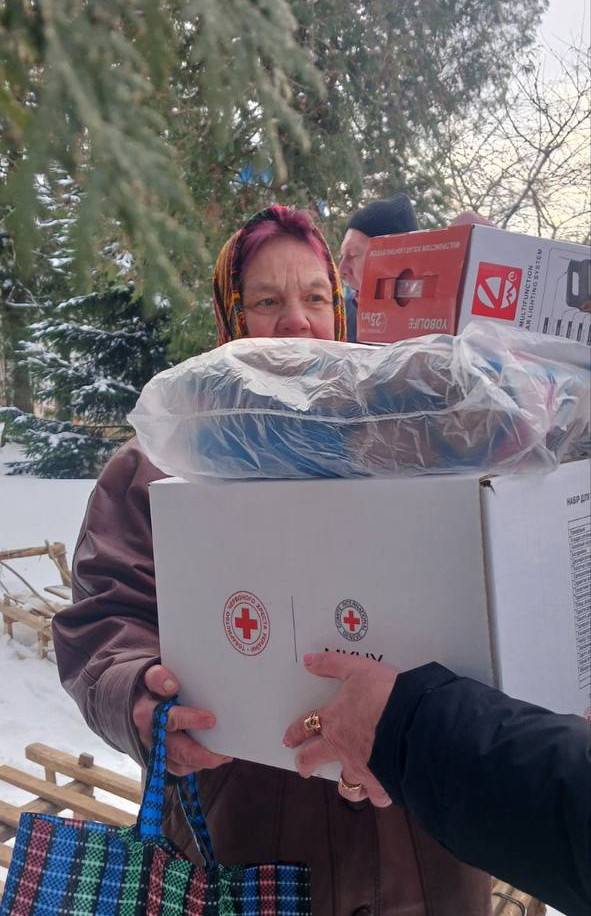 Сьогодні староста Новоборовицького старостинського округу Олена Анищенко, яка нині опікується і селом Гірськ, особисто передала жителям села гуманітарну допомогу від Товариства Червоного Хреста України.